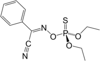 Phoxim is an organophosphate insecticide that is produced by the Bayer corporation. It is an analogous dimethyl ester and an organothiophosphate acaricide. It is allowed for use in limited applications in the European Union.[2] It is banned for use on crops in the European Union since 22 December 2007.[3]