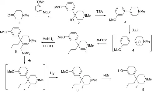 It is unusual in that one enantiomer is a pure μ-opioid agonist, while the other is an antagonist.[4] The (3R,4R) isomer is the agonist, while (3S,4S) is antagonist.[5] This means that the racemic mix of the two enantiomers is a mixed agonist-antagonist, with relatively low abuse potential, and little of the κ-opioid activity that tends to cause problems with other opioid mixed agonist-antagonists such as pentazocine.[6]