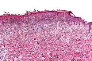 | Micrograph of a pigmented spindle cell nevus (top of image). H&E stain. | |