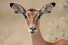 In animals the function of the pinna is to collect sound, and perform spectral transformations to incoming sounds which enable the process of vertical localization to take place.[2] It collects sound by acting as a funnel, amplifying the sound and directing it to the auditory canal. While reflecting from the pinna, sound also goes through a filtering process, as well as frequency dependent amplitude modulation which adds directional information to the sound (see sound localization, head-related transfer function, pinna notch). In various species, the pinna can also signal mood and radiate heat.