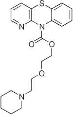 Pipazetate (INN) (brand names Dipect, Lenopect, Selvigon, Theratuss, Toraxan), or pipazethate (USAN), is a pyridobenzthiazine that was briefly marketed as a cough suppressant, closely related to the phenothiazine class.[1][2] It binds to the sigma-1 receptor with an IC50 value of 190 nM.[3] It also has local anesthetic action, and in large doses can produce seizures.[4]