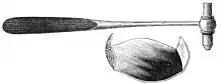 During percussion the middle finger of examiner's hand is routinely used as pleximeter. The finger of the examiner's left hand is firmly applied to the chest wall so as to displace any air between it and the chest wall and the plexor strikes on the middle phalanx of the pleximeter.[1] It can also be an instrument made of wood, ivory, or other hard substances.[2]