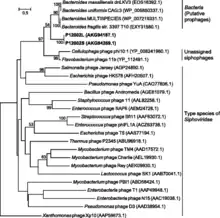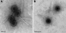 Only two species of lytic phage are known to infect members of this genus, and both have double stranded DNA with virions that include isometric heads and non-contractile tails (class Caudoviricetes, morphotype: siphoviruses).[33] Viral lysis has been implicated as a major driver of changes in genus-level composition of microbial communities.[34]