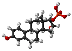 ![]() Skeletal structure of polyestriol phosphate (top) and ball-and-stick model of estriol phosphate (one monomer of polyestriol phosphate) (bottom) | |