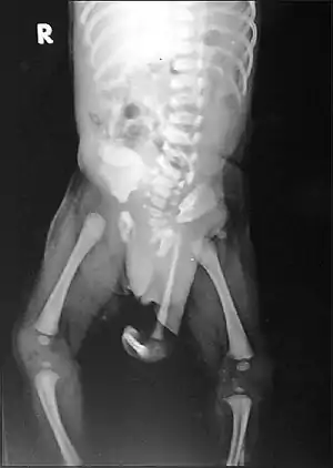 | Radiograph of a human child with polymelia | |