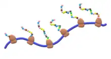A polyribosome (or polysome or ergosome) is a group of ribosomes bound to an mRNA molecule like “beads” on a “thread”.[1] It consists of a complex of an mRNA molecule and two or more ribosomes that act to translate mRNA instructions into polypeptides. Originally coined "ergosomes" in 1963, they were further characterized by Jonathan Warner, Paul M. Knopf,[2] and Alex Rich.
