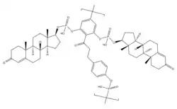 Polytestosterone phloretin phosphate (PTPP) is an androgen and anabolic steroid as well as androgen ester which was never marketed.[1] It is an ester of testosterone with phosphoric acid that is in the form of a polymer and is coupled with phloretin.[1] Like other androgen esters, PTPP acts as a long-lasting prodrug of testosterone in the body.[1] However, analogously to the polymeric estrogen esters polyestradiol phosphate (PEP), polyestriol phosphate (PE3P), and polydiethylstilbestrol phosphate (PSP), PTPP has a strongly prolonged duration with very uniform testosterone levels in animals compared to non-polymeric testosterone esters.[1] According to its developers, this is "exactly the effect which should be aimed at in order to approach natural hormone production as closely as possible".[1] PTPP was developed around 1953 at the same time as PEP and its patent was published in 1960.[1] The patent was assigned to the Swedish pharmaceutical company Leo Läkemedel AB, which also developed PEP.[1]