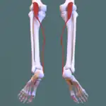 Flexor hallucis longus muscleInferior two-thirds of posterior surface of fibula; inferior part of interosseous membraneBase of distal phalanx of big toe (hallux)