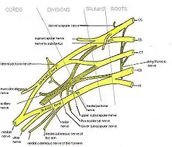 ![]() Plan of brachial plexus. (Posterior cord is shaded gray.) | |