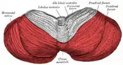 Superior view of an cerebellum. Posterior lobe shown in red.