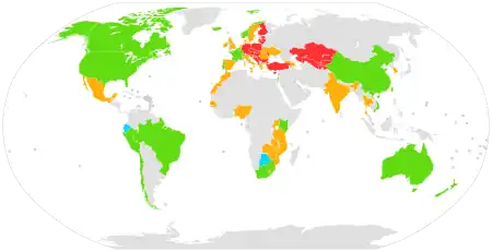 As of 2018, numerous countries have approved the use of PrEP for HIV/AIDS prevention, including the United States, South Korea,[40] France, Norway,[41] Australia,[42] Israel,[43] Canada,[43] Kenya, South Africa, Peru, Thailand, the European Union[44][45] and Taiwan.[46]