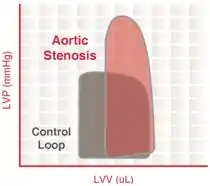 Aortic valve stenosis is abnormal narrowing of the aortic valve. This results in much greater LV pressures than the aortic pressures during LV ejection. The magnitude of the pressure gradient is determined by the severity of the stenosis and the flow rate across the valve.