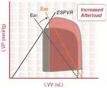 - reduced ventricular stroke volume due to increased afterload (which decreases ejection velocity)