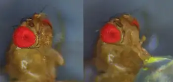 The proboscis extension reflex is part of an insect's feeding behavior. When the antenna is stimulated by sugar water, the proboscis automatically sticks out to drink.[1] This reflex response can be used to study insect learning and memory in the context of foraging. The PER paradigm is most commonly used in associative learning experiments in honeybees and bumblebees because it is easy to use for simple Pavlovian conditioning.[2]
