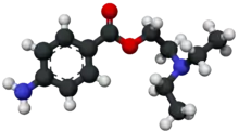Procaine is a local anesthetic drug of the amino ester group. It is most commonly used in dental procedures to numb the area around a tooth[1] and is also used to reduce the pain of intramuscular injection of penicillin. Owing to the ubiquity of the trade name Novocain or Novocaine, in some regions, procaine is referred to generically as novocaine. It acts mainly as a sodium channel blocker.[2] Today, it is used therapeutically in some countries due to its sympatholytic, anti-inflammatory, perfusion-enhancing, and mood-enhancing effects.[3]