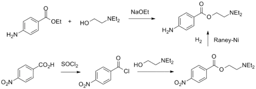 - The first consists of the direct reaction of the 4-aminobenzoic acid ethyl ester with 2-diethylaminoethanol in the presence of sodium ethoxide.