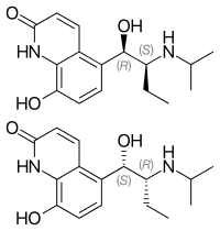 - Yoshizaki S, Manabe Y, Tamada S, Nakagawa K, Tei S (August 1977). "Isomers of erythro-5-(1-hydroxy-2-isopropylaminobutyl)-8-hydroxycarbostyril, a new bronchodilator". Journal of Medicinal Chemistry. 20 (8): 1103–1104. doi:10.1021/jm00218a024. PMID 894683.