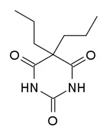 Propylbarbital (Propal, Propanal, Proponal), also known as 5,5-dipropylbarbituric acid, is a barbiturate derivative used as a hypnotic drug.[1][2][3]