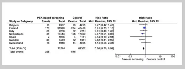 A study published in the European Journal of Cancer (October 2009) documented that prostate cancer screening reduced prostate cancer mortality by 37 percent. By utilizing a control group of men from Northern Ireland, where PSA screening is infrequent, the research showed this substantial reduction in prostate cancer deaths when compared to men who were PSA tested as part of the ERSPC study.[57]