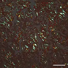 The concept of proteopathy can trace its origins to the mid-19th century, when, in 1854, Rudolf Virchow coined the term amyloid ("starch-like") to describe a substance in cerebral corpora amylacea that exhibited a chemical reaction resembling that of cellulose. In 1859, Friedreich and Kekulé demonstrated that, rather than consisting of cellulose, "amyloid" actually is rich in protein.[9] Subsequent research has shown that many different proteins can form amyloid, and that all amyloids show birefringence in cross-polarized light after staining with the dye Congo red, as well as a fibrillar ultrastructure when viewed with an electron microscope.[9] However, some proteinaceous lesions lack birefringence and contain few or no classical amyloid fibrils, such as the diffuse deposits of amyloid beta (Aβ) protein in the brains of people with Alzheimer's.[10] Furthermore, evidence has emerged that small, non-fibrillar protein aggregates known as oligomers are toxic to the cells of an affected organ, and that amyloidogenic proteins in their fibrillar form may be relatively benign.[11][12]