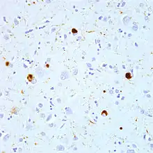 | Alzheimer's disease[16] | Amyloid β peptide (Aβ); Tau protein (see tauopathies) |
