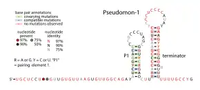 ![]() Consensus secondary structure of Pseudomon-1 RNAs | |