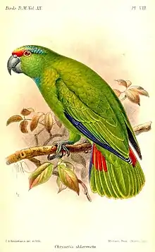 ![]() "Chrysotis chloronota" (Festive Amazon). Catalogue of the Birds in the British Museum, Vol. 20 (1891).[1] | |