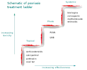 81. Menter A, Korman NJ, Elmets CA, Feldman SR, Gelfand JM, Gordon KB, et al. (April 2009). "Guidelines of care for the management of psoriasis and psoriatic arthritis. Section 3. Guidelines of care for the management and treatment of psoriasis with topical therapies". Journal of the American Academy of Dermatology. 60 (4): 643–59. doi:10.1016/j.jaad.2008.12.032. PMID 19217694.