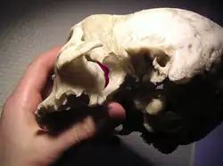 ![]() Human skull with entrance to pterygopalatine fossa marked in red | |