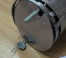 An alternative is a stainless steel case with dime sized holes in it, known as a Puanite box. The material is placed inside the container, which is then locked with a plastic or metal tie embossed seal with the supervising organization's insignia and placed on one of the incubator shelves. The case can only be opened by snipping the tie.[8]