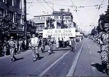 The simplest is to administer painful corporal punishment in public - the major aim may be deterrence of potential offenders - so the public will witness the perpetrator's fear and agony. This can either take place in a town square or other public gathering location such as a school, or take the form of a procession through the streets. This was not uncommon in the sentences to Staupenschlag (flagellation by whipping or birching, generally on the bare buttocks)[16] in various European states, till the 19th century.[17] A naval equivalent was Flogging round the fleet on a raft taken from ship to ship for consecutive installments of a great total of lashes.[18][19] In some countries, the punishment of foot whipping is executed in public to this day.[20]