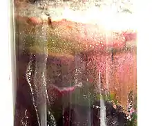 Purple sulfur bacteria (like green sulfur bacteria) typically form blooms in non-thermal aquatic ecosystems, some members have been found in hot springs.[34] For example Chlorobaculum tepidum can only be found in some hot springs in New Zealand at a pH value between 4.3 and 6.2 and at a temperature above 56 °C. Another example are Thermochromatium tepidum, has been found in several hot springs in western North America at temperatures above 58 °C and may represent the most thermophilic extant Pseudomonadota.[30] Of the purple sulfur bacteria, many members of the Chromatiaceae family are often found in fresh water and marine environments. About 10 species of Chromatiaceae are halophilic.[35]