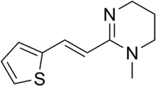 Pyrantel is a medication used to treat a number of parasitic worm infections.[2] This includes ascariasis, hookworm infections, enterobiasis (pinworm infection), trichostrongyliasis, and trichinellosis.[2] It is taken by mouth.[2]