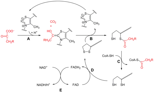 - Patel, M. S.; Nemeria, N. S.; Furey, W.; Jordan, F. (2014). "The pyruvate dehydrogenase complexes: structure-based function and regulation". The Journal of Biological Chemistry. 289 (24): 16615–16623. doi:10.1074/jbc.R114.563148. PMC 4059105. PMID 24798336.