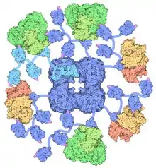 - Zhou, H.; McCarthy, B.; O'Connor, M.; Reed, J.; Stoops, K. (Dec 2001). "The remarkable structural and functional organization of the eukaryotic pyruvate dehydrogenase complexes". Proceedings of the National Academy of Sciences of the United States of America. 98 (26): 14802–14807. Bibcode:2001PNAS...9814802Z. doi:10.1073/pnas.011597698. ISSN 0027-8424. PMC 64939. PMID 11752427., bovine kidney pyruvate dehydrogenase complex