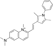 Pyrvinium (Viprynium) is an anthelmintic effective for pinworms.[1] Several forms of pyrvinium have been prepared with variable counter anions, such as halides, tosylate, triflate and pamoate.[2][3] Pyrvinium was identified as a potent Wnt inhibitor, acting through activation of Casein kinase CK1α.[4][5]