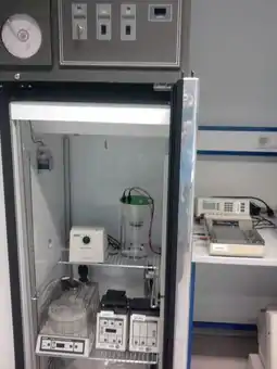 Although the pH value (10.00) of the electrophoresis buffer does not correspond to a physiological pH value within a cell or tissue type, the separated ring-shaped protein bands are eluted continuously into a physiological buffer solution (pH 8.00) and isolated in different fractions (cf. fig. Electropherogram). Provided that irreversible denaturation cannot be demonstrated by an independent procedure, most protein molecules are stable in aqueous solution, at pH values from 3 to 10 if the temperature is below 50 °C.[16] As the Joule heat and temperature generated during electrophoresis may exceed 50 °C,[17] and thus, have a negative impact on the stability and migration behavior of proteins in the gel, the separation system, consisting of the electrophoresis chamber, fraction collector and other devices, is cooled in a refrigerator at 4 °C. Overheating of the gel is impeded by internal cooling of the gel column as an integrated part of the electrophoresis chamber and by generating a constant power by the power supply (cf. fig. Equipment).
