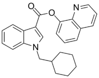 QUCHIC (BB-22, SGT-32 or 1-(cyclohexylmethyl)-1H-indole-3-carboxylic acid 8-quinolinyl ester) is a designer drug offered by online vendors as a cannabimimetic agent, and was first detected being sold in synthetic cannabis products in Japan in early 2013,[1] and subsequently also in New Zealand.[2] The structure of QUCHIC appears to use an understanding of structure-activity relationships within the indole class of cannabimimetics, although its design origins are unclear. QUCHIC, along with QUPIC, represents a structurally unique synthetic cannabinoid chemotype since it contains an ester linker at the indole 3-position rather than the precedented ketone of JWH-018 and its analogues, or the amide of SDB-001 and its analogues.