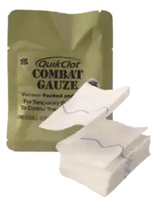 QuikClot is a brand of hemostatic wound dressing that contains an agent that promotes blood clotting. The brand is owned by Z-Medica Corporation.[1] It is primarily used by militaries and law enforcement to treat hemorrhaging from trauma.
