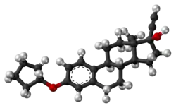 Quinestrol, also known as ethinylestradiol cyclopentyl ether (EECPE), sold under the brand name Estrovis among others, is an estrogen medication which has been used in menopausal hormone therapy, hormonal birth control, and to treat breast cancer and prostate cancer.[2][3] It is taken once per week to once per month by mouth.[4][5][6][7]