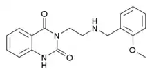 RH-34 is a compound which acts as a potent and selective partial agonist for the 5-HT2A serotonin receptor subtype. It was derived by structural modification of the selective 5-HT2A antagonist ketanserin, with the 4-(p-fluorobenzoyl)piperidine moiety replaced by the N-(2-methoxybenzyl) pharmacophore found in such potent 5-HT2A agonists as NBOMe-2C-B and NBOMe-2C-I. This alteration was found to retain 5-HT2A affinity and selectivity, but reversed activity from an antagonist to a moderate efficacy partial agonist.[1][2][3]