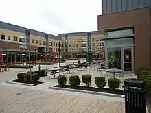Park Point at RIT (originally referred to as "College Town") is an 80,000 sq ft (7,400 m2) multi-use residential and commercial enterprise on the northeast corner of the campus.[18] Park Point is accessible to the rest of the RIT campus through a regular bus service loop, numerous pedestrian paths connecting Park Point to the RIT Main Loop, and main roads. Although originally intended as added student housing, financial penalties resulting from developing on swampland led RIT to lease Park Point to Wilmorite for a period of twenty years and subsequently develop the property without the university incurring additional fees.