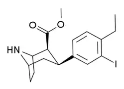 - Navarro HA, Xu H, Zhong D, Blough BE, Ross WP, Kuhar MJ, Carroll FI (September 2001). "[(125)I]3beta-(4-ethyl-3-iodophenyl)nortropane-2beta-carboxylic acid methyl ester ([(125)I]EINT): a potent and selective radioligand for the brain serotonin transporter". Synapse. New York, N.Y. 41 (3): 241–7. doi:10.1002/syn.1081. PMID 11418937. S2CID 2323766.