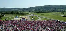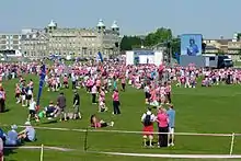 The Imperial Cancer Research Fund identifies Jim Cowan as having the original idea for the Race for Life.[1] The Fund then engaged Mr. Cowan to organise and act as race director for the first Race for Life event,[1] which took place in 1994 in Battersea Park, London, where 750 participants raised £48,000. The following year, the race was extended to 6 venues and had 4,500 participants with £210,000 raised. It continued to grow year on year to become one of the UK's largest fundraising events, which in 2006 involved 240 races, 750,000 participants and raised £46,000,000. Since Race for Life began in 1994, 6,000,000 women across the UK have raised over £493,000,000 for the charity.[2] Notable participants include: Jane Tomlinson, whose first fundraising event was a Race for Life in 2001 after being diagnosed with terminal breast cancer. She went on to raise over £1,750,000 for charity before her death in 2007.[3] In 2009, actresses Laila Morse and Lynda Bellingham became a Race for Life ambassadors in memory of Wendy Richard and Jade Goody, both of whom had recently died from cancer.[4] Bellingham later died from cancer in 2014.