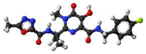 In one method used for its manufacture, 2-amino-2-methylpropanenitrile is reacted with the acid chloride of 5-methyl-1,3,4-oxadiazole-2-carboxylic acid using N-methylmorpholine as base. The product is treated with aqueous hydroxylamine to form an amidoxime. The central pyrimidone ring of the drug is then created when the amidoxime reacts with dimethyl acetylenedicarboxylate. The synthesis is completed by conversion of the remaining methyl ester of the intermediate to an amide with 4-fluorobenzylamine, followed by methylation using trimethylsulfoxonium iodide. Use of that reagent ensures the required chemoselectivity so that methylation occurs on the nitrogen atom of the pyrimidone.[16]