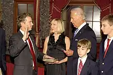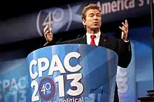 Randal Howard Paul (born January 7, 1963) is an American physician and politician serving as the junior United States senator from Kentucky since 2011.[1] A member of the Republican Party, he is a son of former three-time presidential candidate and 12-term U.S. representative from Texas, Ron Paul. Paul describes himself as a constitutional conservative and supporter of the Tea Party movement.