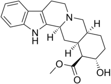 Rauwolscine, also known as isoyohimbine, α-yohimbine, and corynanthidine, is an alkaloid found in various species within the genera Rauvolfia and Corynanthe (including Pausinystalia).[1] It is a stereoisomer of yohimbine.[1] Rauwolscine is a central nervous system stimulant, a local anesthetic and a vague aphrodisiac.[1]