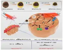 The scheme of fabrication process and therapeutic mechanism of thermo-responsive (MSNs@CaO2-ICG)@LA NPs for synergistic CDT/PDT with H2O2/O2 self-supply and GSH depletion