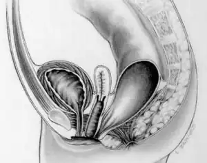 Rectovaginal fistula can also be a symptom of various diseases, including infection by lymphogranuloma venereum,[6] or the unintended result of surgery, such as episiotomy or sex reassignment surgery. They may present as a complication of vaginal surgery, including vaginal hysterectomy. They are a recognized presentation of rectal carcinoma or rarely diverticular disease of the bowel or Crohn's disease. They are seen rarely after radiotherapy treatment for cervical cancer.