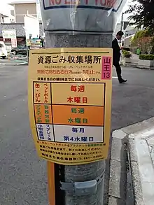 - ""Recycling in Japan" or "Reasons to get it right and avoid eternal shame"". SoraNews24 -Japan News-. 2014-05-14. Retrieved 2020-03-23.